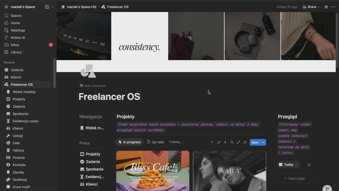 Zapomnij o gubieniu ważnych notatek i tonięciu w papierach. Freelancer OS to gotowe centrum dowodzenia, które zorganizuje Twoją firmę od pierwszego dnia. Nie musisz być ekspertem IT, nie musisz znać się na programowaniu. Dostajesz gotowy system, w którym po prostu wypełniasz puste pola.